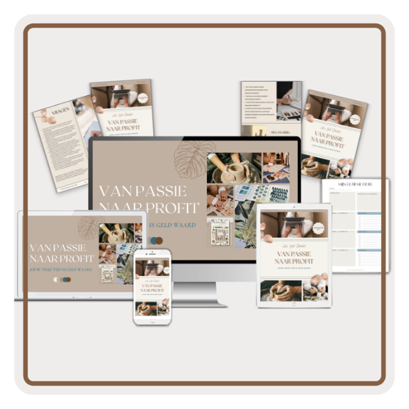 hun talent omzetten in een winstgevend bedrijf. Werk aan je succes mindset, leer positioneren, prijzen, marketing, fotografie, verkopen in 8 modules, 40 praktische lessen, prachtige werkboeken, meditatie + gratis bonussen. Alles in je eigen tempo, direct toegang!